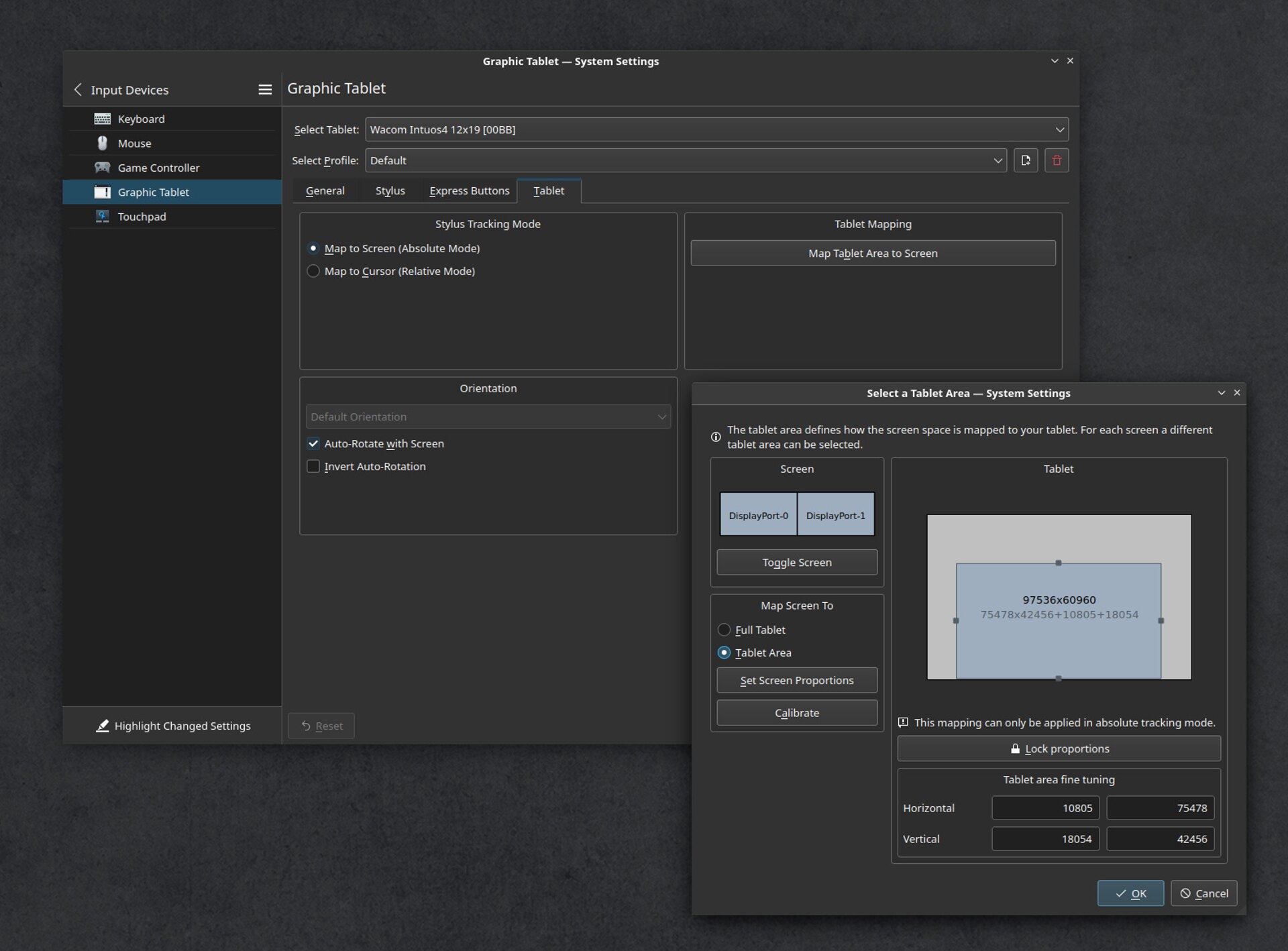 fig1. Graphics Tablet interface comparison: Wayland Plasma 6 vs X11 Plasma 5