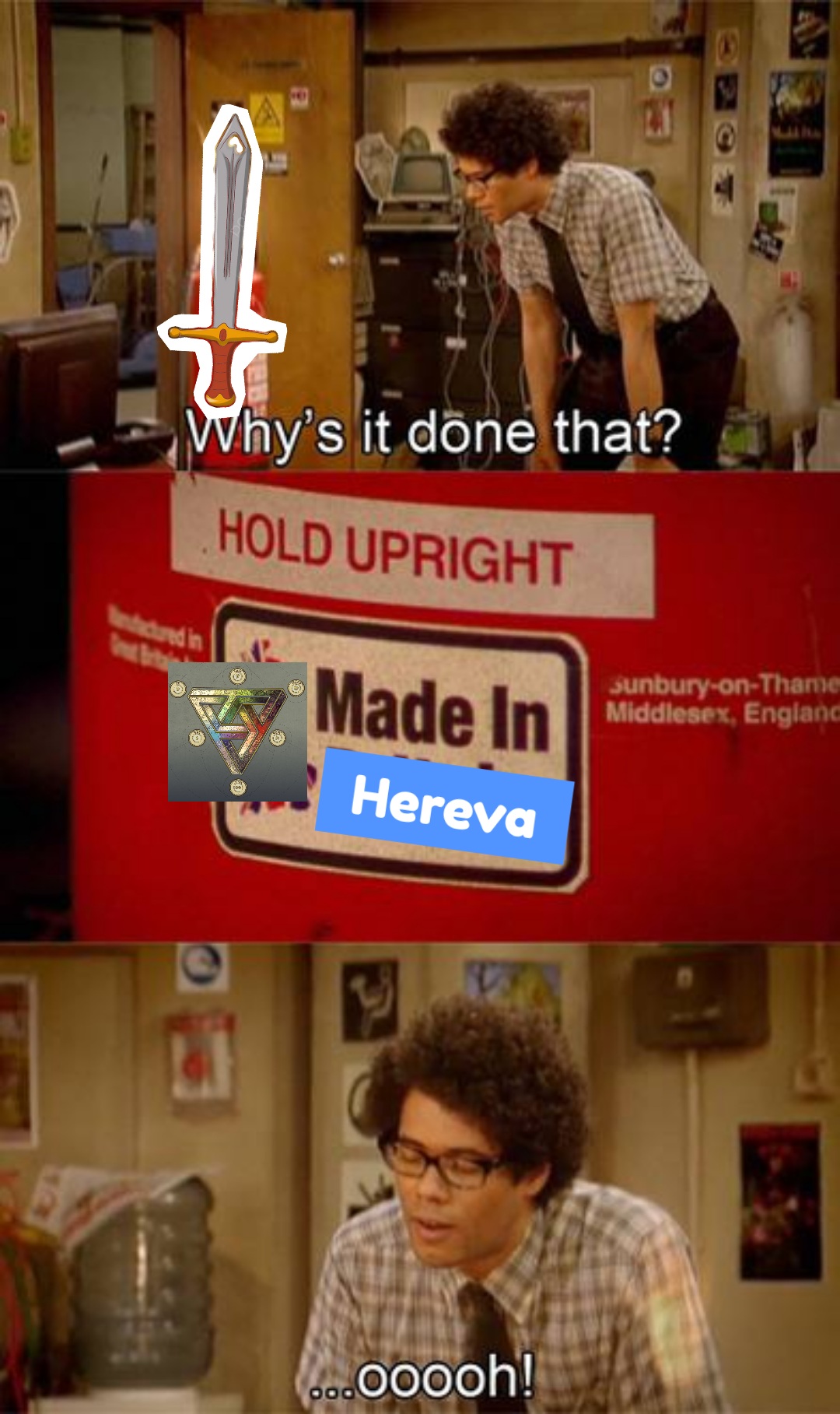 "How does one 'turn off' a sword?" "you put it in its scabbard" "DO YOU HAVE ANY IDEA WHAT I HAD TO DO TO TAKE IT BACK OUT??" "So... you have tried?" "YES I $&%#ING HAVE TRIED!"
