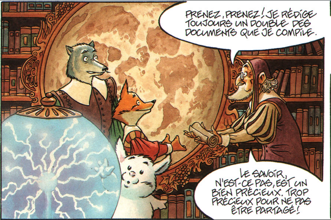 It reminds me of "De Capes et de Crocs" Tome 7 "Take it, take it. I always write a copy of the documents I gather. Knowledge, isn't it, is an object precious, too precious to not be shared with others"