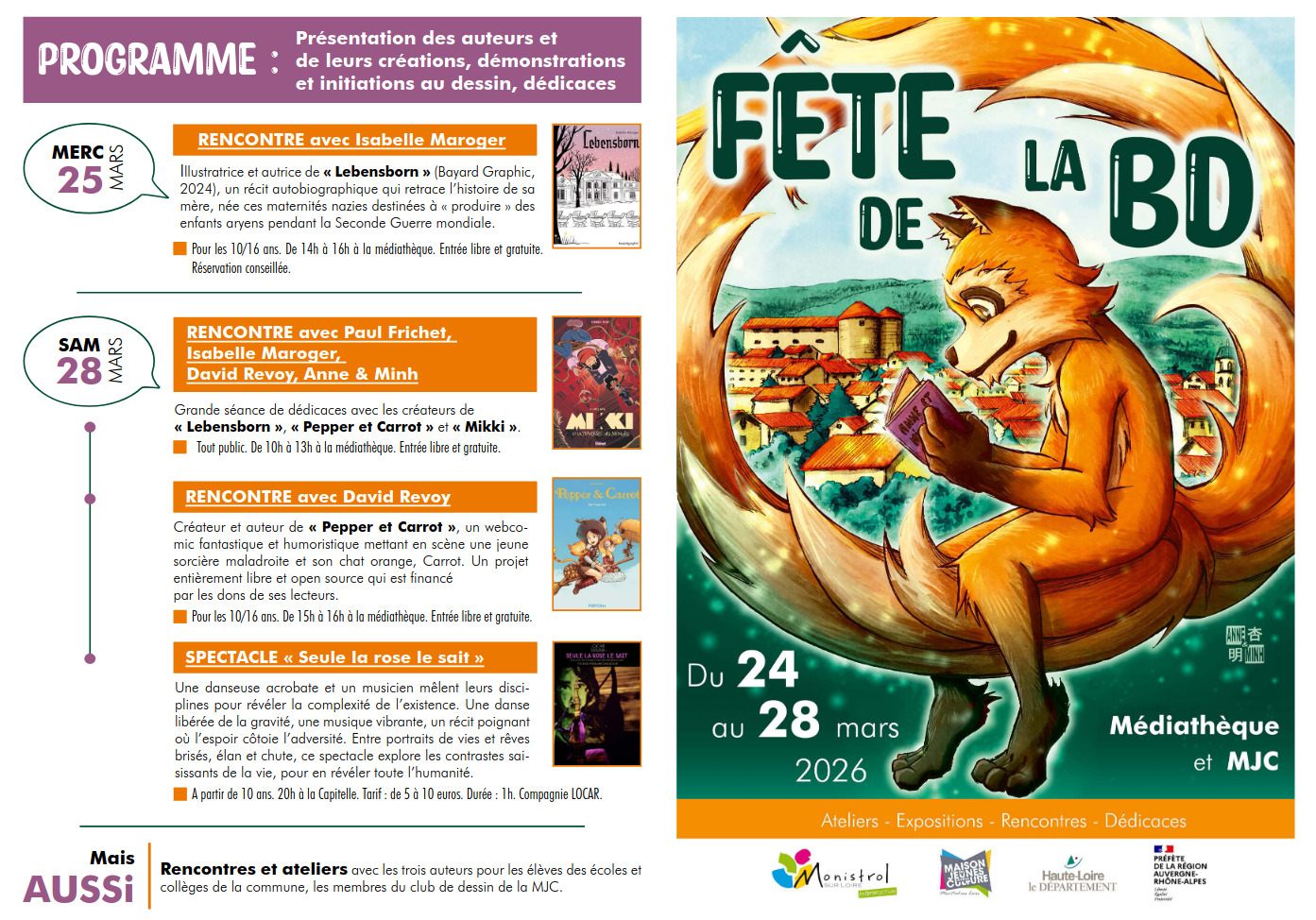 - Full schedule, PDF hosted by the MJC: https://www.mjcmonistrol.fr/media/programme-V-2-bd-25.pdf